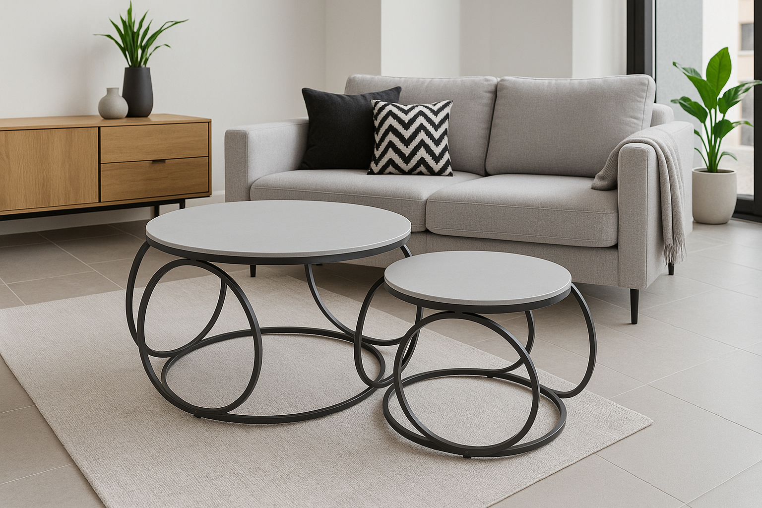 Enhance your living space with the Bubble Nesting Coffee Table Set, a stylish and functional duo designed for both versatility and convenience. This set includes a large and small table, with the smaller one neatly sliding underneath for easy storage—perfect for saving space when needed. Use them together for a layered look or separately to suit your needs.