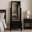 With its full-length swivel mirror, you can adjust it to the perfect angle for dressing, grooming, or checking your outfit from head to toe. The spacious single drawer on smooth glide rails, complete with a sleek bar handle, provides convenient storage for accessories, beauty essentials, or small personal items.