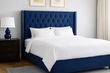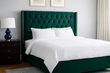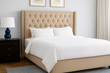 Buttoning stops above the mattress line for a tailored, high-end finish