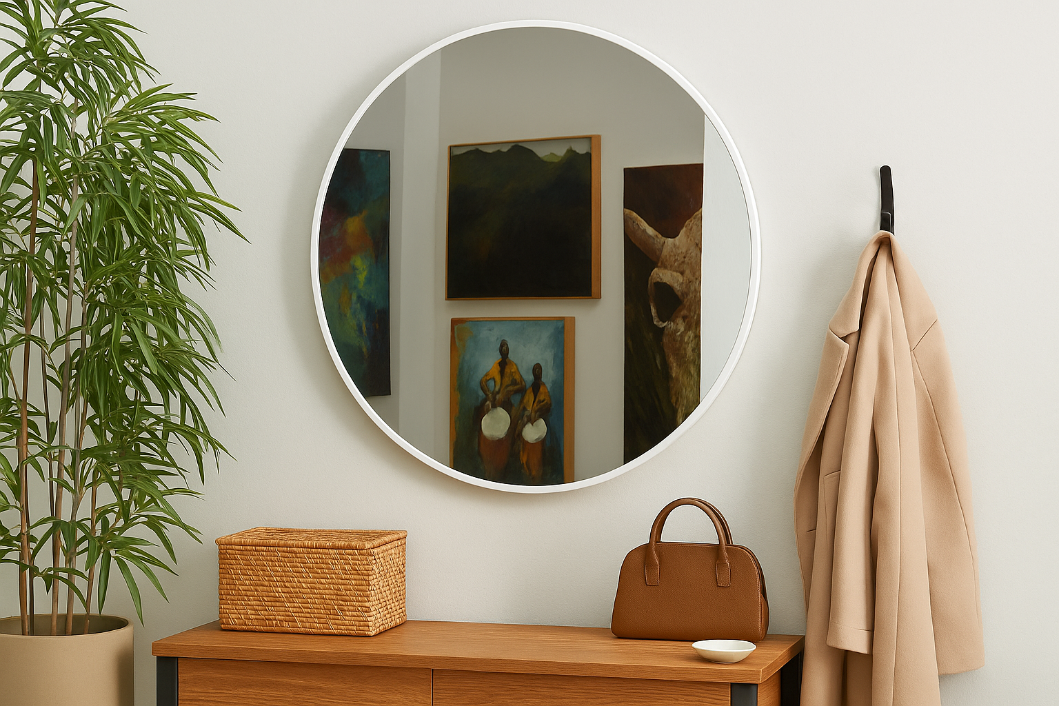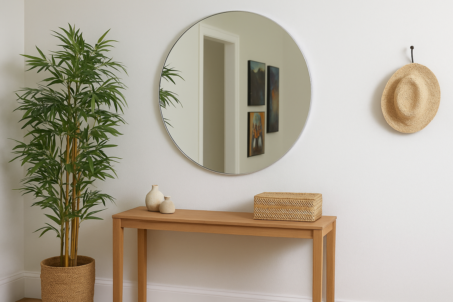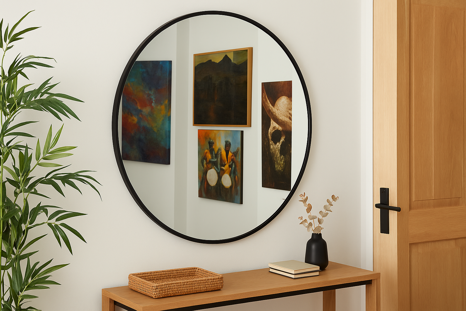 Living Room: Hang above a console or couch and pair with bold wall art or pendant lighting for a gallery-style impact.
