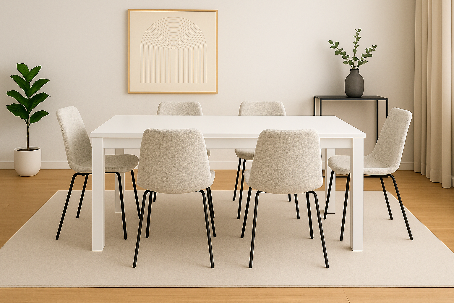 Elevate your dining space with The Snow Dining Set—a blend of modern beauty and ultimate comfort that makes every meal an occasion.