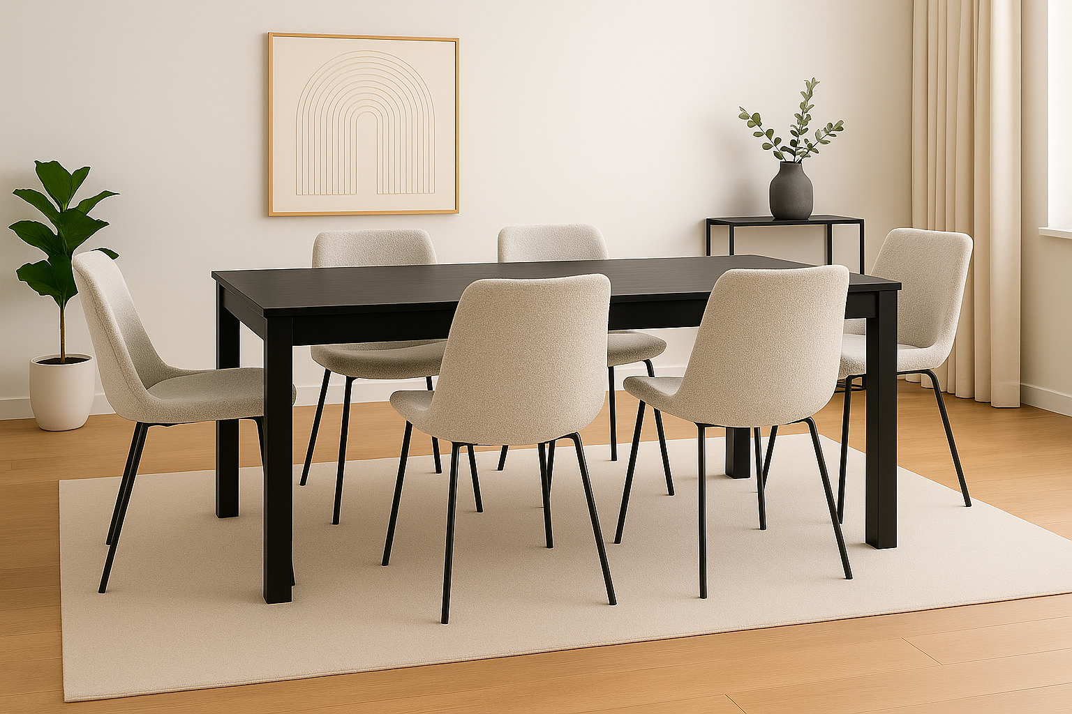 • Sleek & Modern Detailing: The black chair legs contrast beautifully with the fabric, adding a sophisticated and contemporary touch to the design.