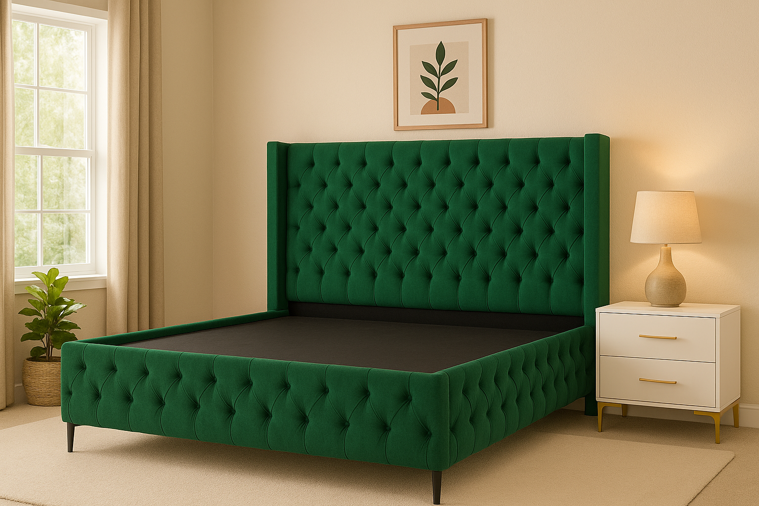 Add a touch of luxury to your bedroom with our Velvet Deep Buttoning Bed Set. Upholstered in premium velvet, this bed brings sophistication and comfort into your space with its plush texture and timeless design.